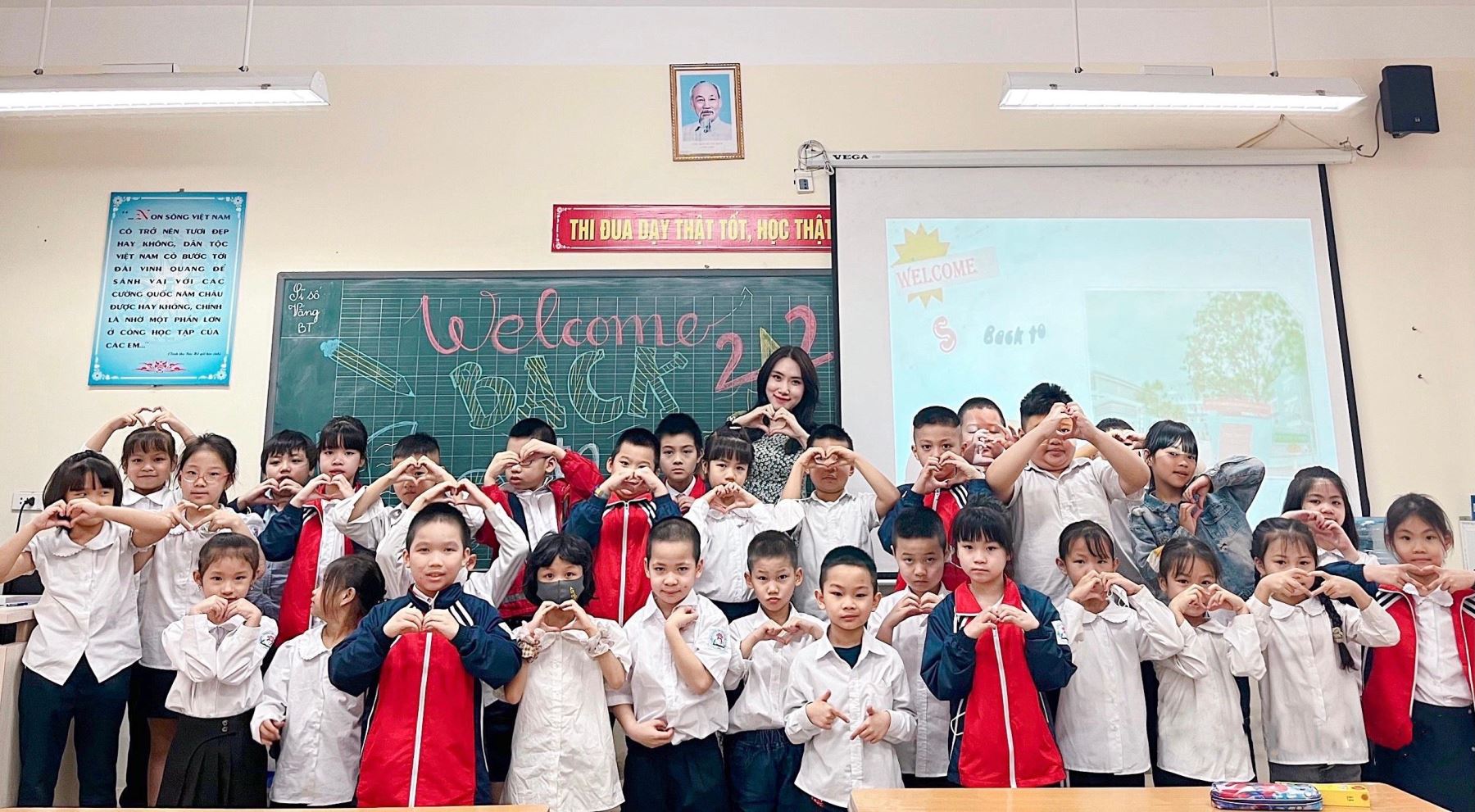 Cô trò lớp 2A2 trong tiết học đầu tiên khi quay lại trường học.