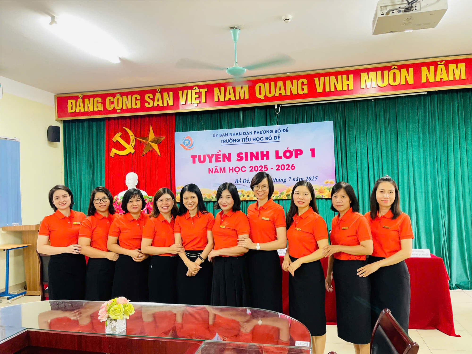 Thực hiện Kế hoạch số 140/KH-UBND ngày 26 tháng 3 năm 2025 của UBND quận Long Biên về công tác tuyển sinh vào trường mầm non, lớp 1, lớp 6 năm học 2025-2026 quận Long Biên; Thực hiện Kế hoạch số 26/KH-THBĐ ngày 14 tháng 4 năm 2025 của trường Tiểu học Bồ Đề về kế hoạch tuyển sinh lớp 1 năm học 2025-2026; Thực hiện Quyết định số 45KH-PGDĐT ngày 05/6/2025 của PGD&ĐT quận Long Biên về việc thành lập Hội đồng tuyển sinh năm học 2025-2026 của các trường MN, TH và THCS quận Long Biên, trong 3 ngày: 01, 02, 03/7/2025, Hội đồng tuyển sinh trường tiểu học Bồ Đề đã hỗ trợ cha mẹ học sinh đăng ký tuyển sinh trực tuyến cho con em. Tại phòng Hội đồng, các thầy cô giáo trong Hội đồng tuyển sinh đã sắp xếp các khu vực: bàn hỗ trợ tuyển sinh trực tuyến, bàn tư vấn, bàn hoàn thiện hồ sơ. Nhà trường phân công các đồng chí trong Hội đồng tuyển sinh hỗ trợ và giải đáp các thắc mắc, băn khoăn của phụ huynh.