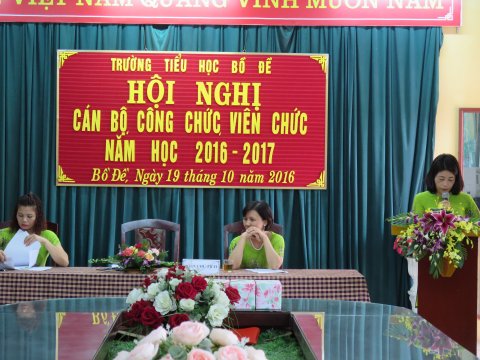 Ngày 19/10/2016 tại Phòng Hội đồng Sư phạm trường Tiểu học Bồ Đề , Nhà trường phối hợp với Công đoàn tổ chức hội nghị cán bộ viên chức năm học 2016 - 2017