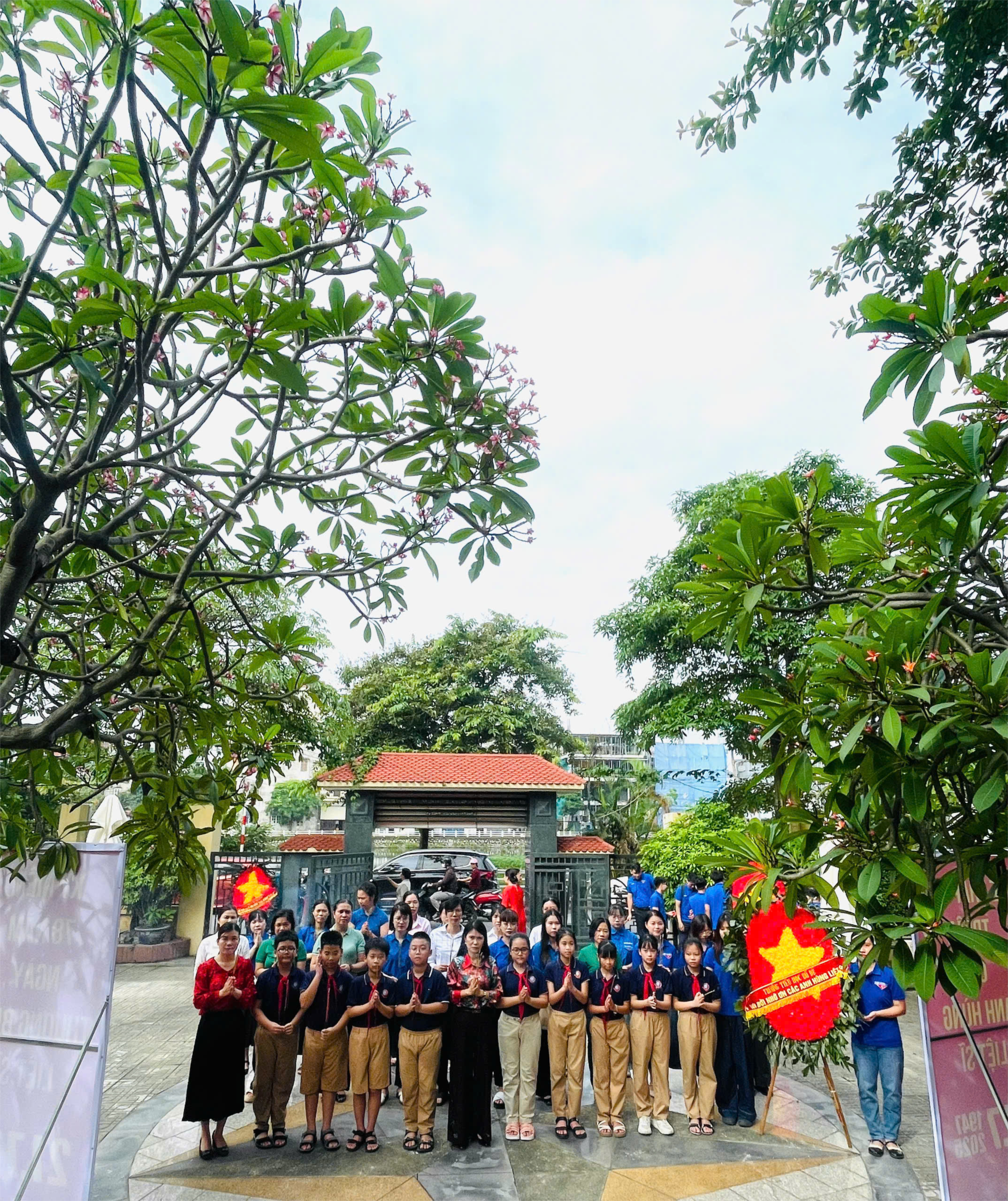 Giáo viên trường TH Bồ Đề dâng hoa tại đài tưởng niệm