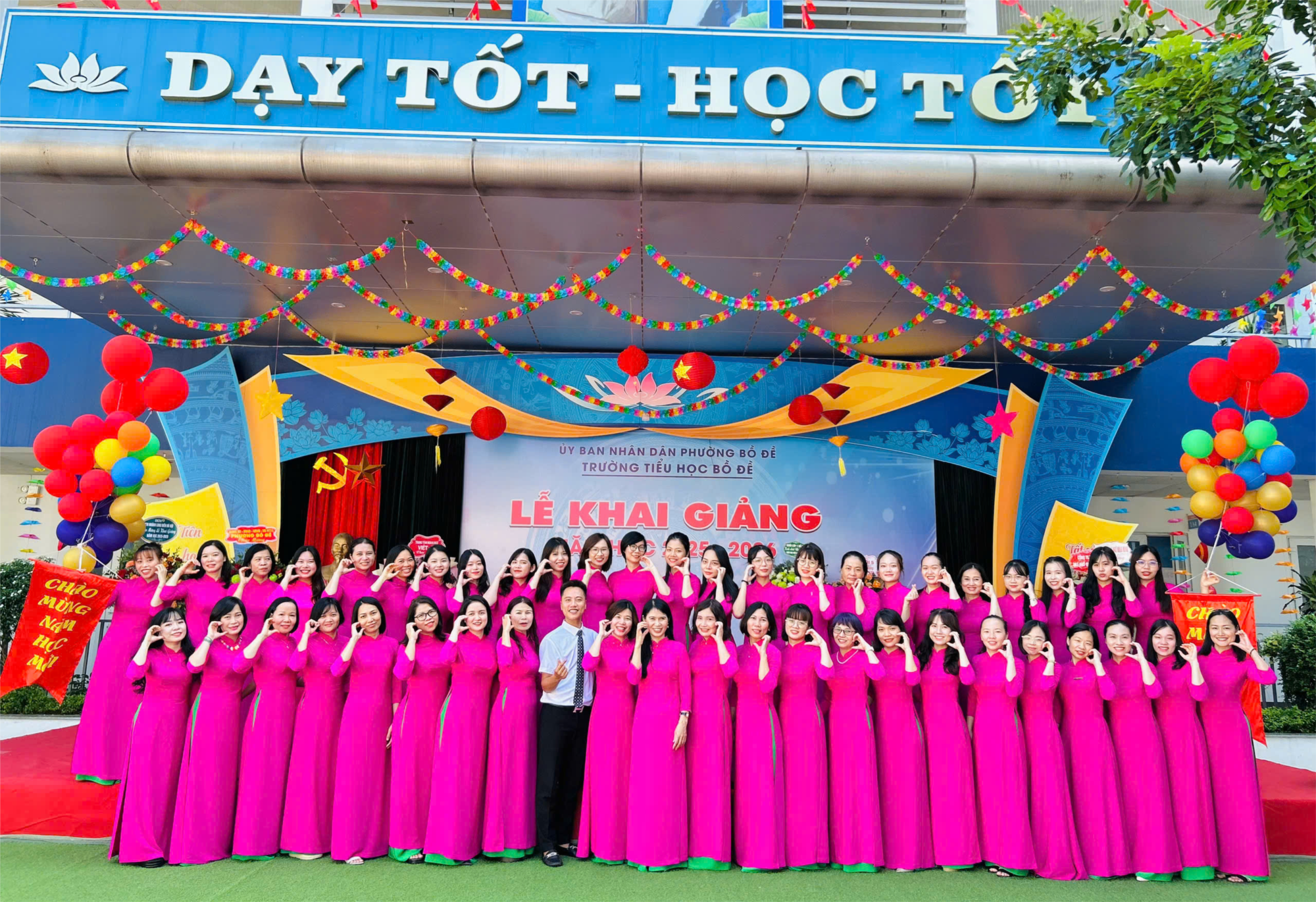Sáng ngày 5/9/2025, trong tiết thu trong xanh, sân trường Tiểu học Bồ Đề như khoác lên mình tấm áo mới rực rỡ sắc cờ hoa, băng rôn, khẩu hiệu. Thầy cô và học sinh trong những bộ trang phục chỉnh tề cùng hội tụ về đây để tham dự Lễ Khai giảng năm học mới. Đây không chỉ là ngày hội đến trường của các em nhỏ mà còn là dịp để thầy trò nhà trường hướng tới kỷ niệm 80 năm ngày thành lập Bộ Quốc gia Giáo dục (nay là Bộ Giáo dục và Đào tạo), tiếp nối truyền thống tốt đẹp của bao thế hệ đi trước.