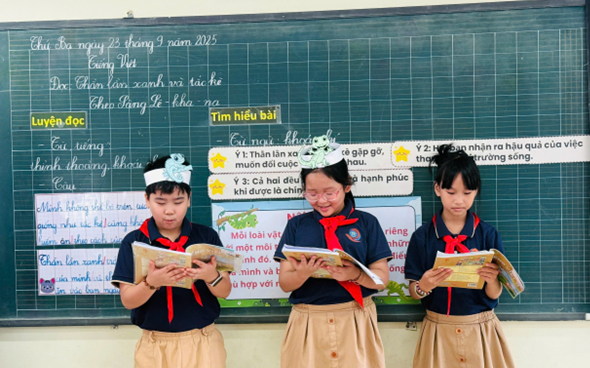 Qua tiết học, nhìn những khuôn mặt rạng rỡ, sáng bừng sự thích thú của học sinh cho thấy cô Nhung đã truyền lửa sự nhiệt huyết của mình để khơi dậy thêm tình yêu và niềm hăng say học Tiếng Việt đến các em học sinh lớp 4A2. Bên cạnh đó, khi học sinh đọc tốt sẽ giúp các em hiểu biết rộng hơn, sâu hơn, suy nghĩ một cách logic hơn. Các em dễ dàng tiếp thu được cái hay, cái đẹp của Tiếng Việt, hướng tới lòng yêu cái thiện, góp phần hình thành nhân cách đạo đức đúng đắn mỗi ngày.