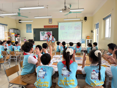 Trong quá trình làm việc nhóm, các em thể hiện tinh thần hợp tác, phân công nhiệm vụ rõ ràng, tích cực trao đổi và hỗ trợ lẫn nhau. Không khí lớp học diễn ra sôi nổi, hào hứng, học sinh say mê với hoạt động học tập.
