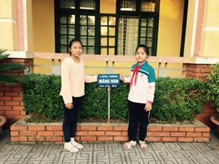 Đại diện HS lớp 5B nhận biển công trình Măng non