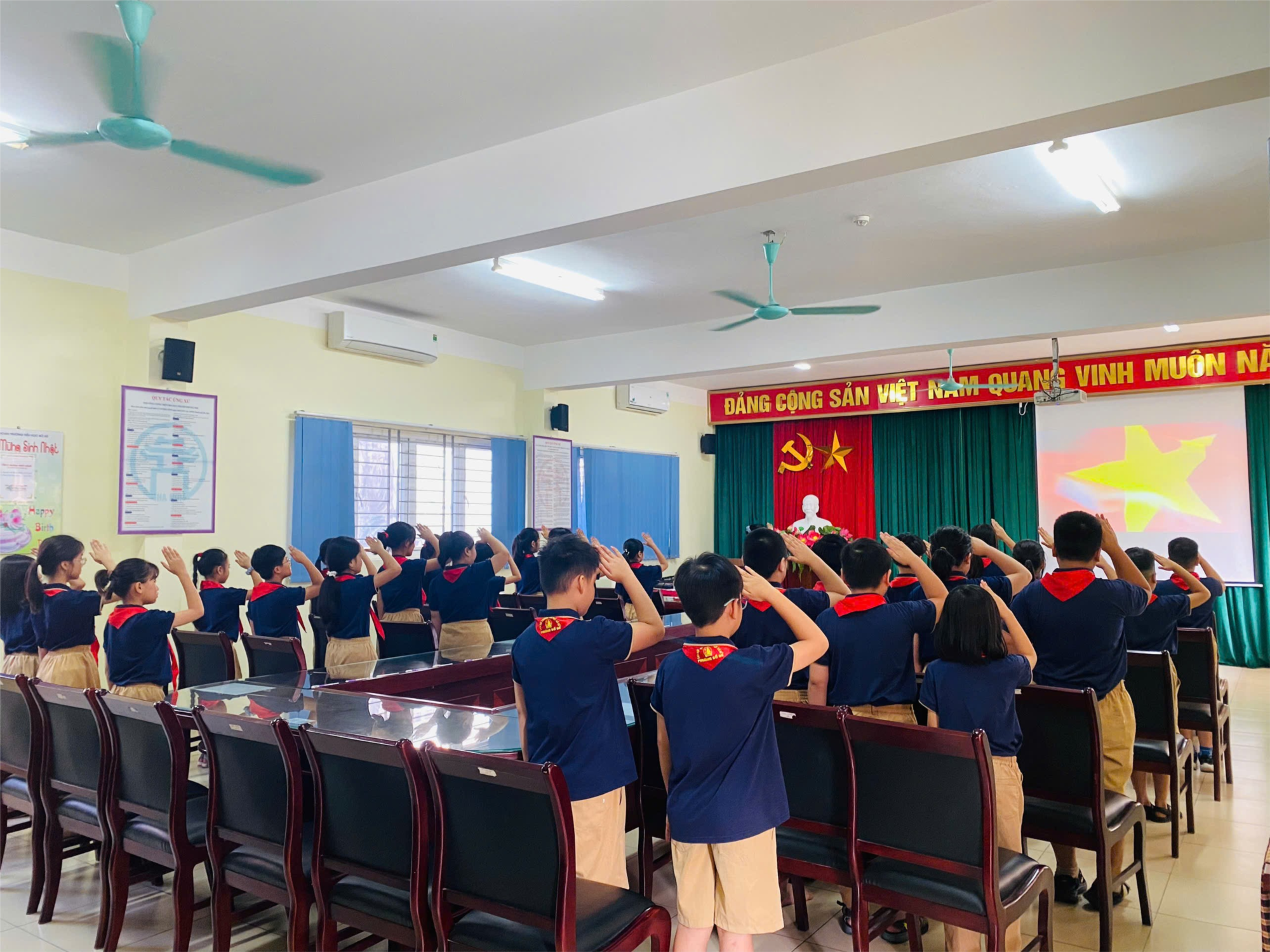 Thực hiện hướng dẫn tổ chức Đại hội Chi đội, Liên đội của Hội đồng đội Phường Bồ Đề và Liên đội Trường Tiểu học Bồ Đề năm học 2025 – 2026 với chủ đề “Thiếu nhi thủ đô vững bước tiến vào Kỷ nguyên mới”, nhằm tổ chức cho các Chi đội trong toàn Liên đội có điều kiện học tập, quan sát thực tế công tác tổ chức chương trình Đại hội Chi đội. Chiều thứ năm ngày 09/10/2025, Chi đội lớp 5A5 tổ chức Đại hội Chi đội mẫu nhiệm kỳ năm học 2025 – 2026.
