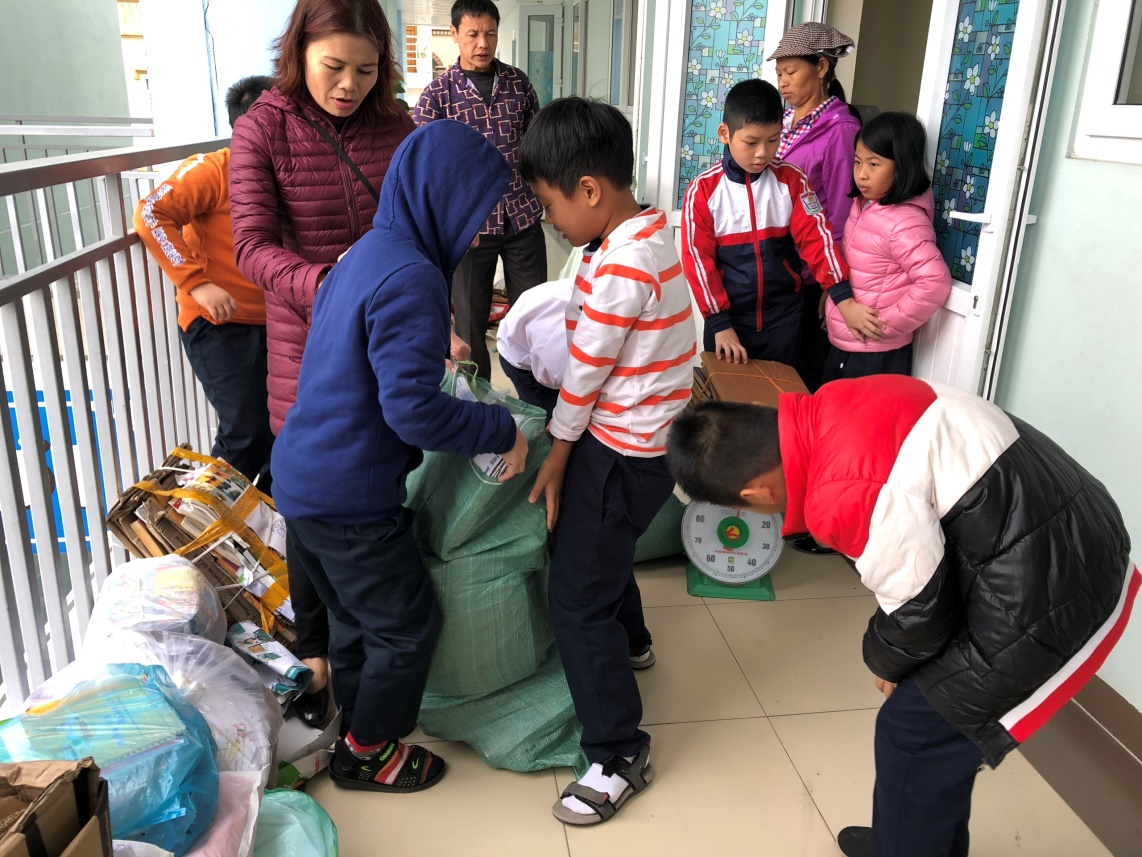 Sau 1 tuần tập hợp quyên góp, ngày 10/12/2018, học sinh khối 3 đã thu gom được 345kg giấy vụn.