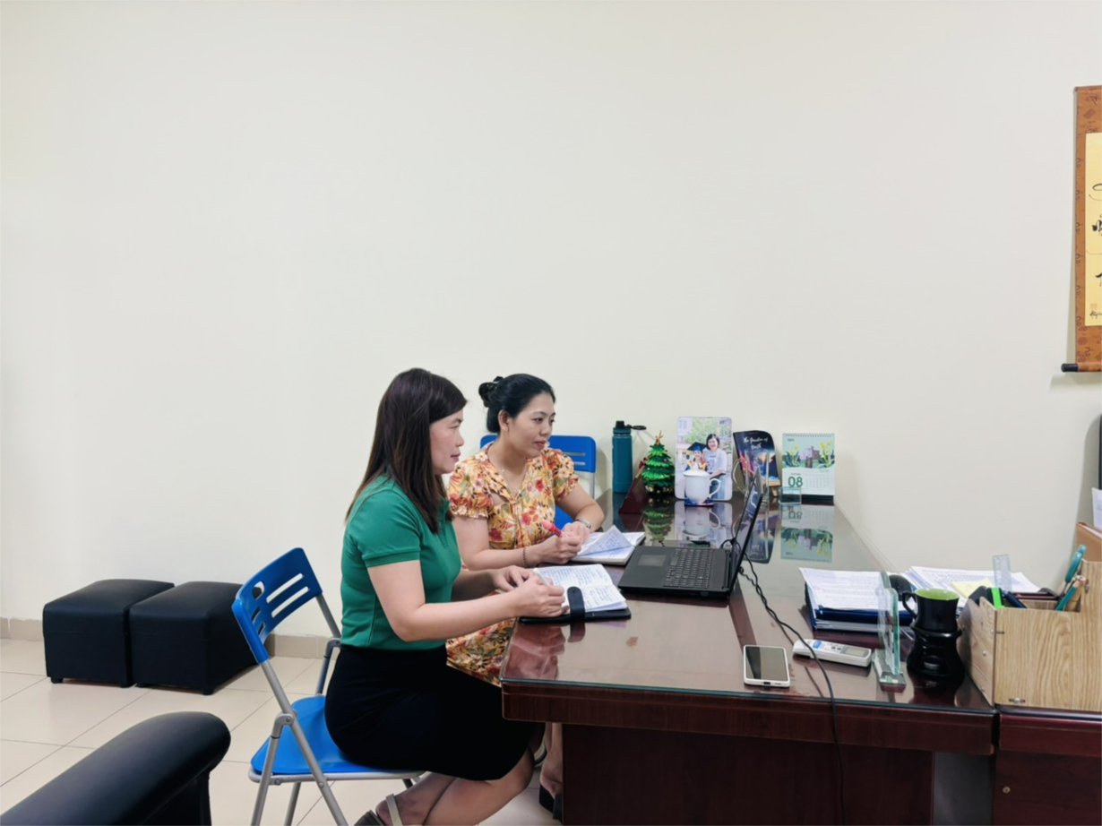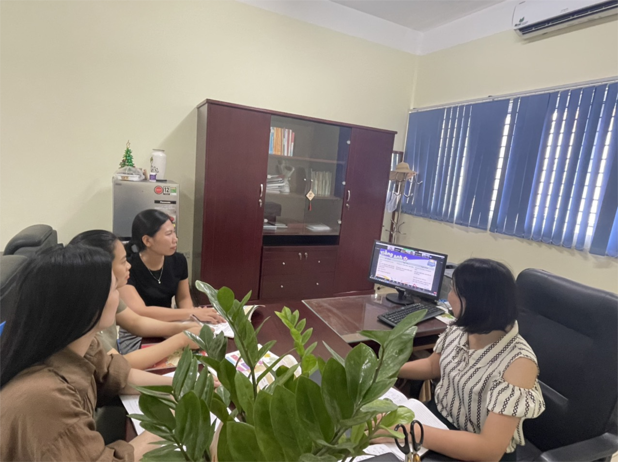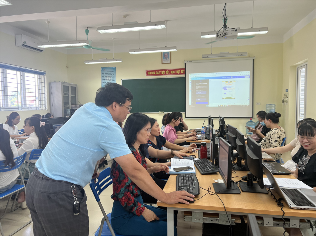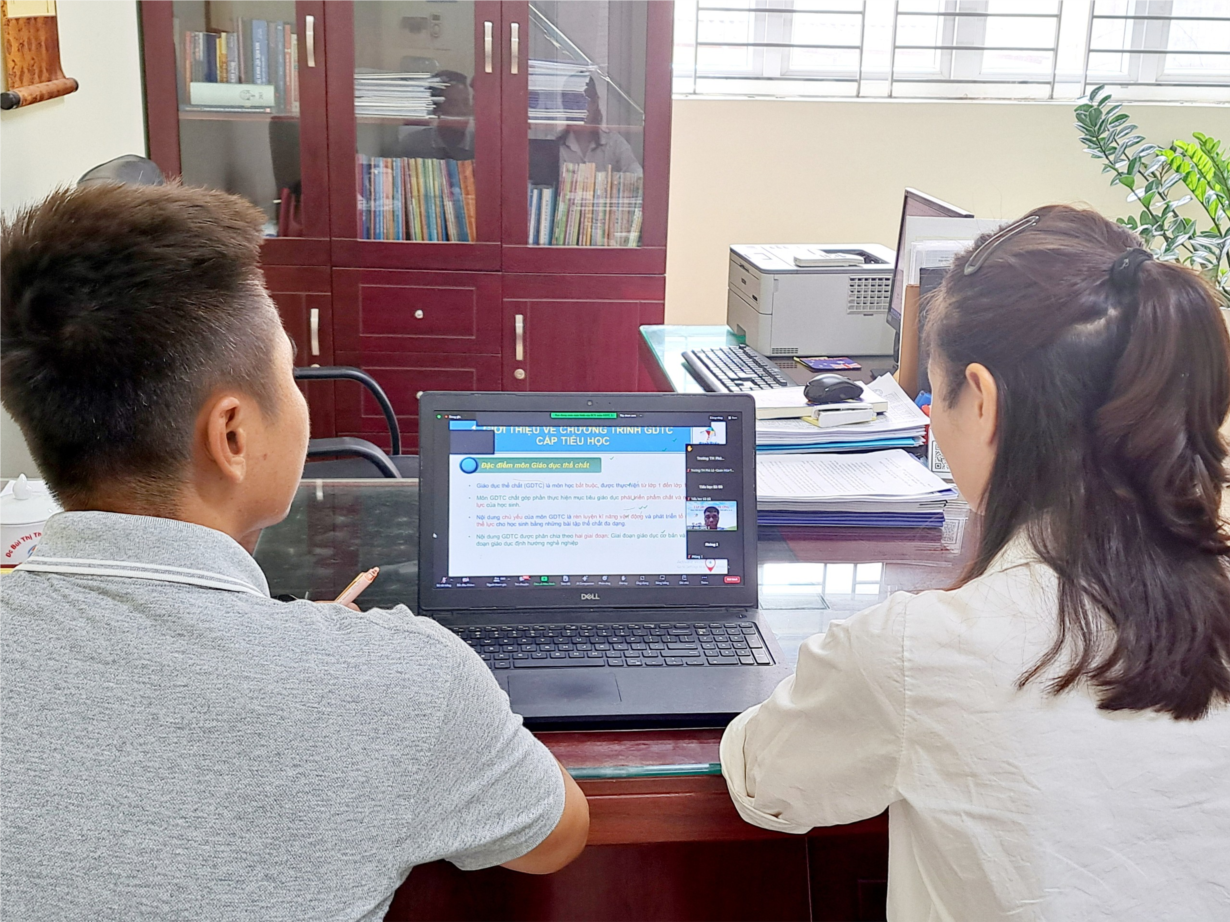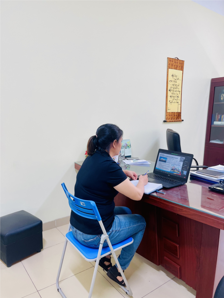 giáo viên sử dụng phần mềm CNTT chấm chữa bài cho học sinh học online.